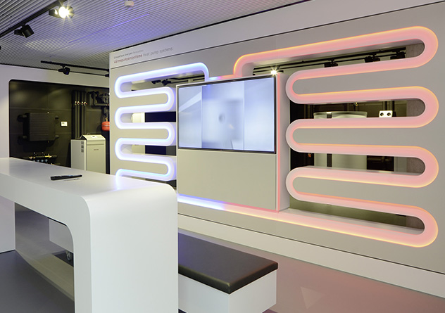 Plně funkční zařízení pro ohřev vody a elektrické vytápění jakož i zařízení na bázi obnovitelných zdrojů energie zprostředkuje STIEBEL ELTRON svým partnerům z oblasti instalace TZB, plánování a architektury přímo v praxi. V školících místnostech je možné nasimulovat např. různé funkce zařízení při extrémních venkovních teplotách a vzájemně je porovnávat.